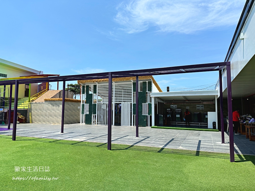 多了個有雨遮的走廊。七、八月是雨季,午後很常下超大雷雨的,所以,洞洞鞋,必僃!!
