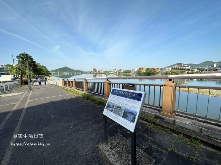 不過,實際走過一回,我滿建議像我們一樣:去程時由犬山遊園站下車、回程時從犬山站上車。從遊園站下車,沿著木曾川往城的方向走,大約也是15-20分鐘左右。沿途都很好走,父子倆邊走邊玩,也就這麼走到山上了。