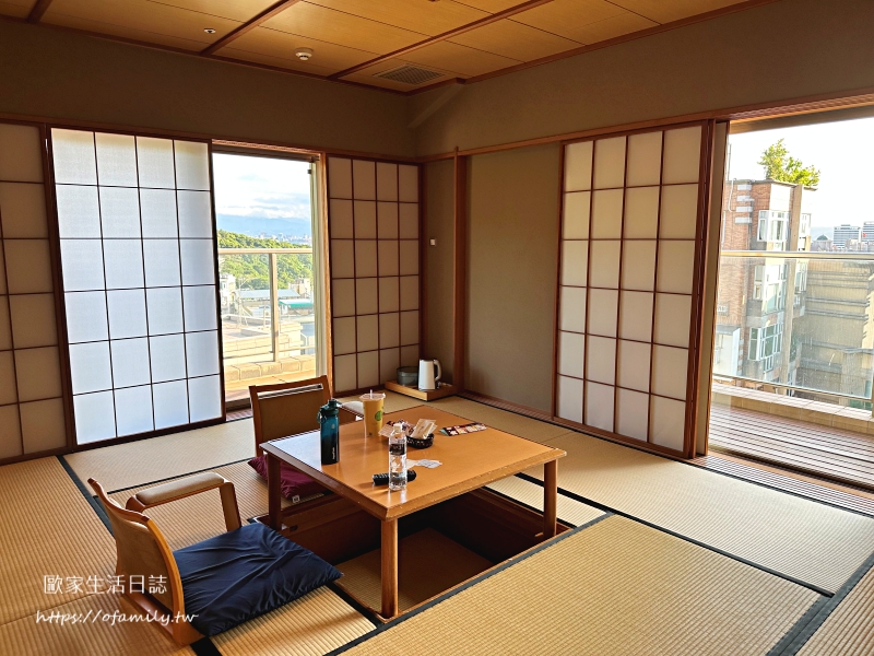 既然是想要有一個「度假感」,所以我訂了日式房間。原本在agoda上的說明是「無窗」房型,但圖片是有窗的,所以我在訂的時候,實在搞不太清楚到底是有窗房型還是無窗房型。總之,我們當天住到的房型是兩面都有落地窗陽台,採光很好。